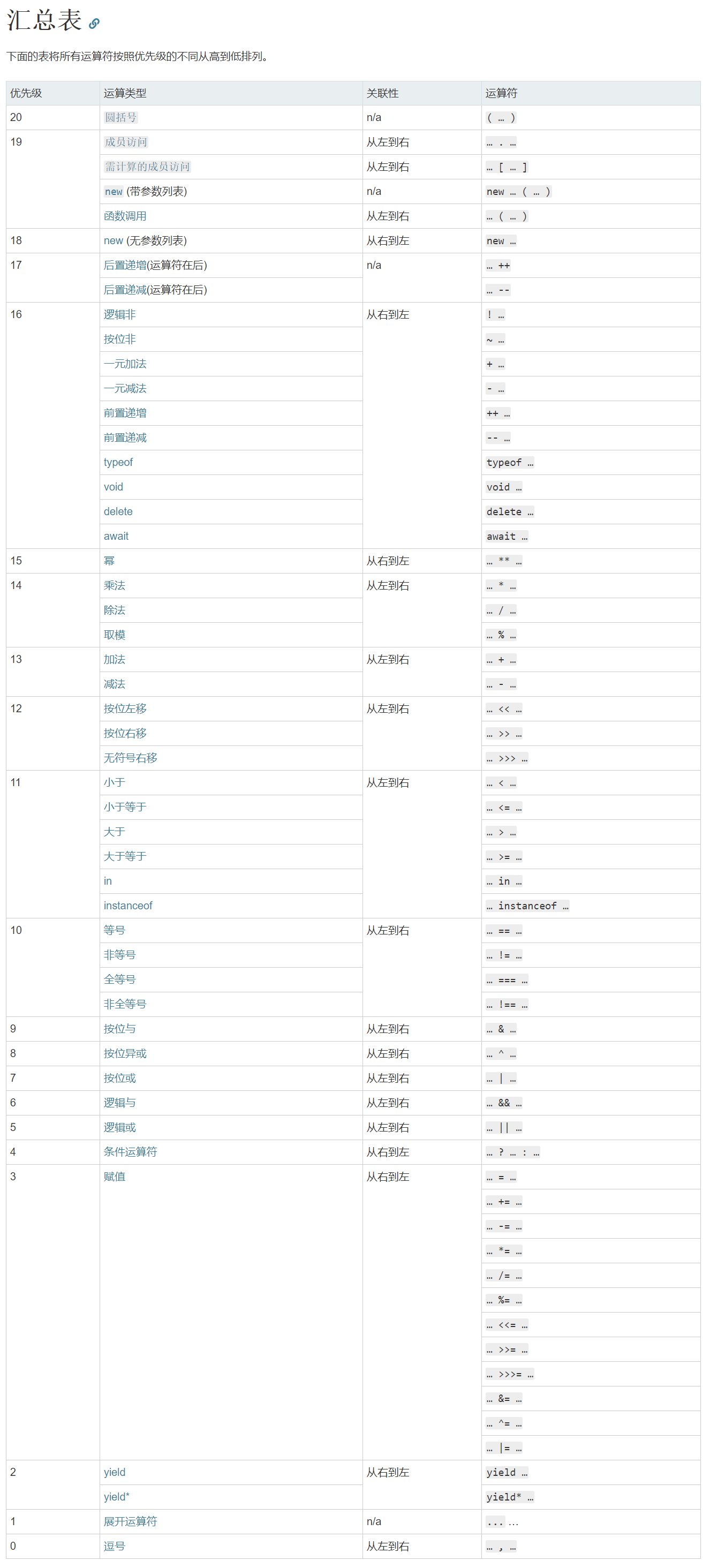 - 运算符优先级