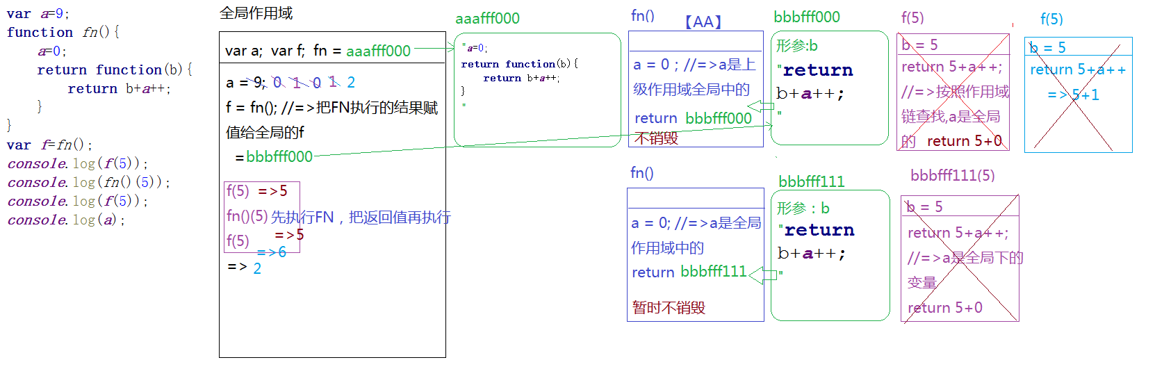* var a; 不管条件是否成立都要进行变量提升, 在全局作用域下声明的变量, 也相当于给window设置了一个对象的属性, 而且两者之间建立了映射的机制<=> window.a=undefined;